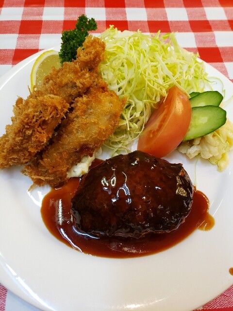 定番メニュー「牡蠣フライ&ハンバーグ」 嫁と行くランチ・リピ