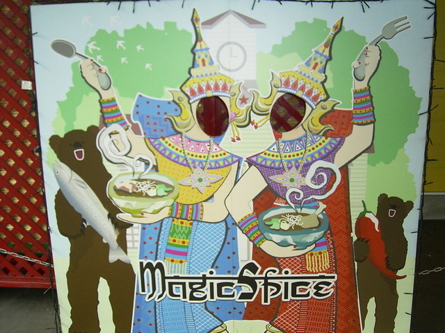 待つことしばし、先にドリンクが。これ、はまる味なんです。フローズンタイプで、ベースはコーヒーなんですが、バナナやモモも一緒にミキサーしてあります。コーヒーとフルーツ、どちらの味が勝つわけでもなく、ほんと不思議でおいしいそしてカレー、揚げた春雨が上にのっているのが特徴的。食べるとこれこれこれーーーーって感じ。言うこと無し。ずっとこのままでいて欲しいです。マジスパ最高!ちなみに汗はいっぱいかけました