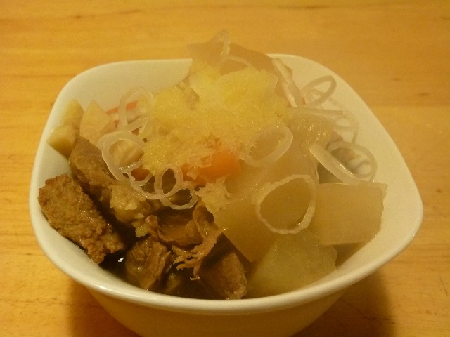 タンは煮込みにしては歯ごたえがあり、大根やニンジン共々よく味が染みていて美味しかったです。