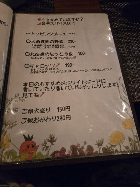 お野菜があるか聞くと、野菜スティックがあると言われたので注文