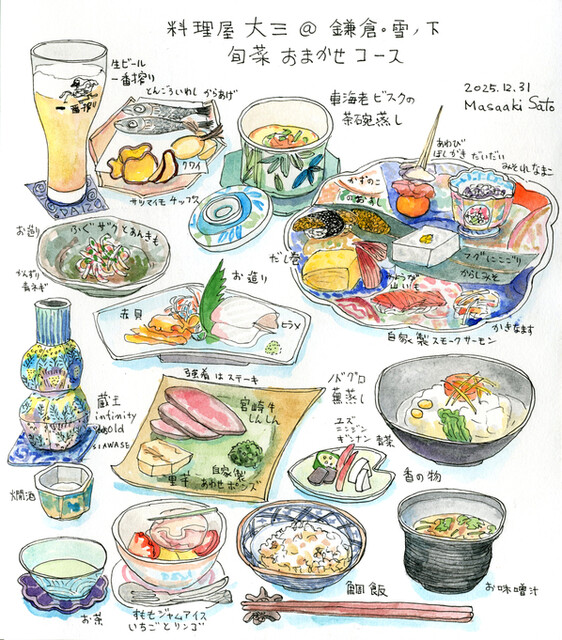 手の込んだ前菜でお酒がすすみ、美味しい出汁が利いたノドグロの蕪蒸しでお腹を温めて、鯛めしでお腹いっぱいになりました。