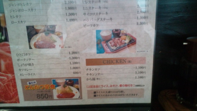 他のお店だとハンバーグもフライも 片方で定食が出来そうだし ご飯も大き目の器にたっぷりで ご飯大盛にする人は皆無だとおもいます。 他にもランチメニューが有り いずれも ¥700円 こちらも 味・量ともに文句なしですが チョッと味が濃い目なので 薄味好みの人には合わないかもしれませんね。
