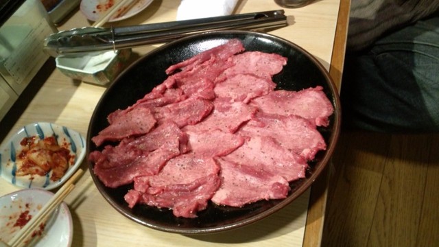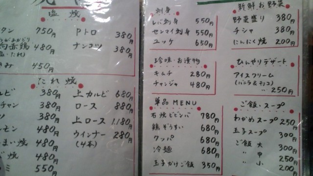 7時に行きましたがすでに 満席でした 早速注文! まずはビール・・ で塩タン・カルビ・マクミ・ホルモンを注文 厨房と接客を2人で切り盛りしているみたいで 最初は出てくるのが少し時間が掛ってましたが 後半は大丈夫でしたね