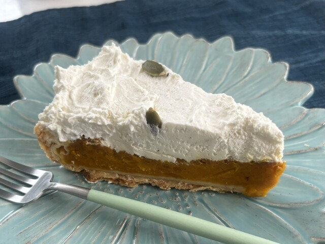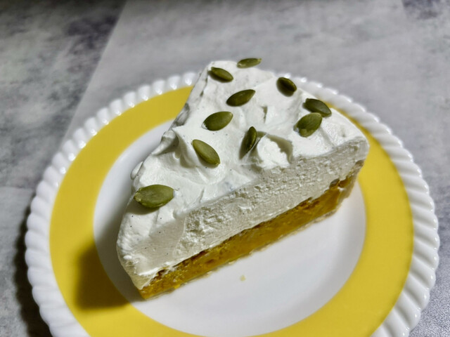 これね‥ブログで断面見てたのですが、かぼちゃのフィリングの厚みと上のシャンティーの厚みが同じくらい!シャンティー爆盛りなんです!