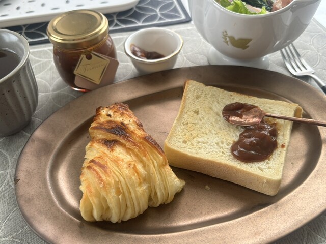 家で、マロンのコンフィチュールやボルディエバターつけて贅沢にいただきました。
