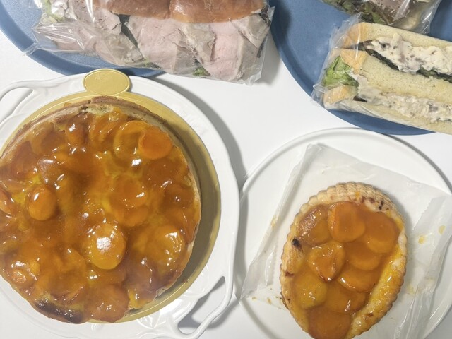 杏のタルト、今年は3台いただけて、とても好きになりましたが、杏より酸味はなく歯ごたえはある、という感じです。