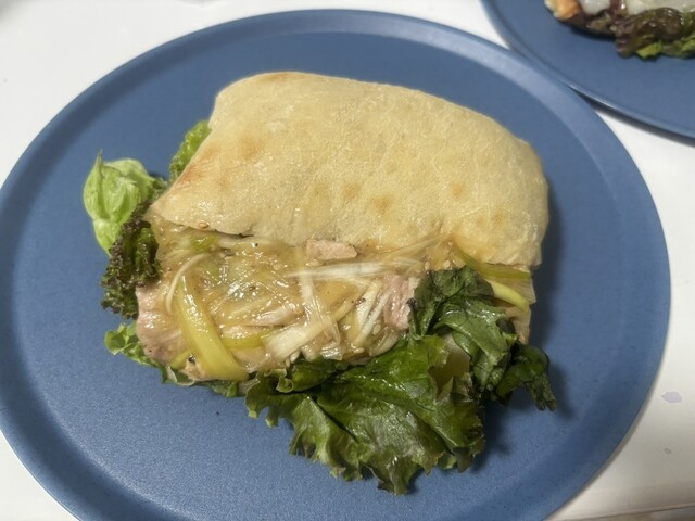 ネギチャーシューとパンが合うのか?!って思うんですけどね。巴シェフのサンドイッチは、いつも意外な具で楽しませてくれますね。そして美味しいんですよね。