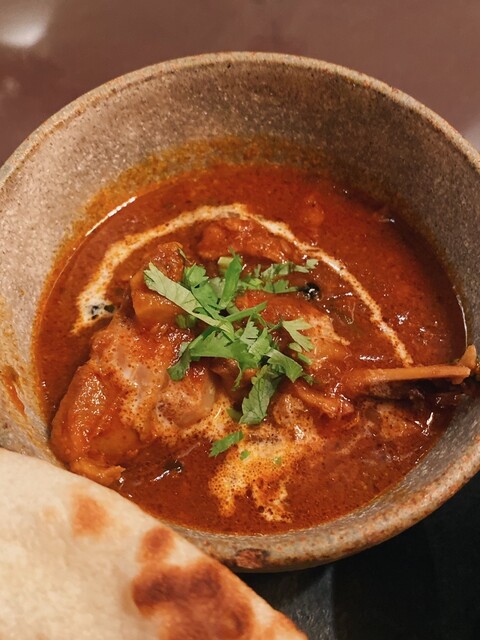 ラッサム、タンドリーチキン、2種のカレーを頼んで3000円ちょい。ランチでのカレーにしてはそこそこの値段ですが、値段以上の美味しさがあります。