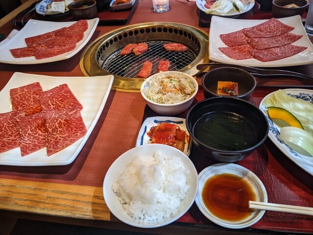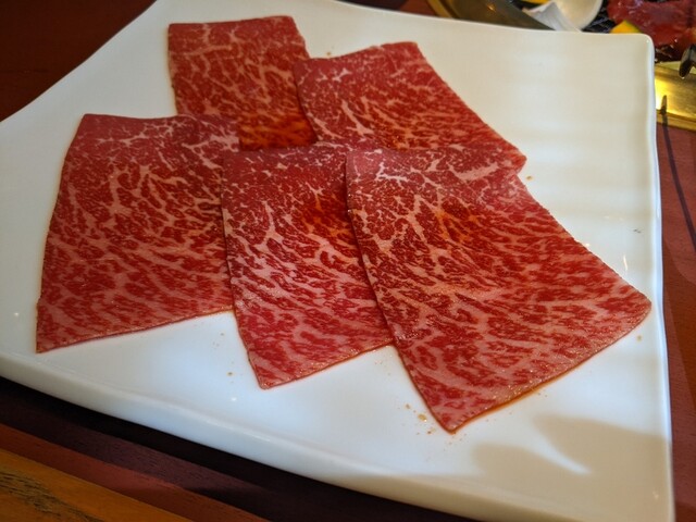 いいお肉の日 11月29日に二人でいいお肉を食べに来た♪カルビランチに、ランチキムチに、A5ももの薄切り2人前づつ計4人前を注文♪贅沢ランチです!!カルビで旨い脂を味わい♪A5もも肉でサッパ濃い肉を味わい♪もーー最高過ぎました!