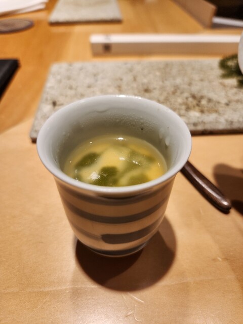 茶碗蒸し。北海道産生ホタテが入ってる。かつおぶしとかの銀あんの出汁がめっちゃ効いてる!温かくてほっこり。