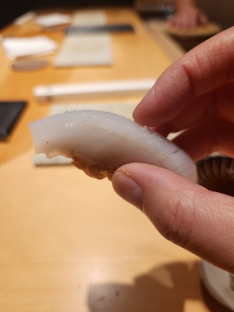 イカの状態によって、切り方の角度などを微調整していると。絶妙なねっとり感と歯ごたえがウマウマ!
