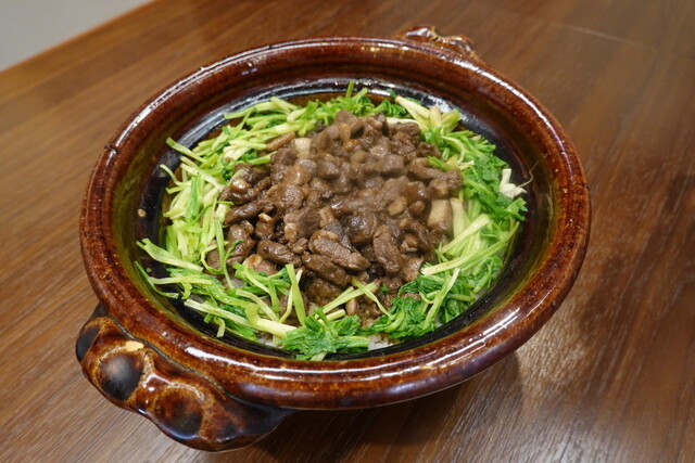 幻の豚、千代幻豚の実山椒鍋の豚肉(竹筒に入っているのは豚つみれ)