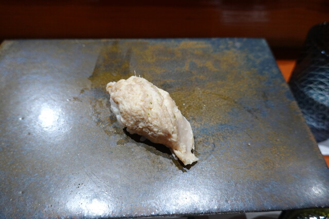 カワハギ肝載せ(鹿児島県開聞岳沖産、4日寝かせ)