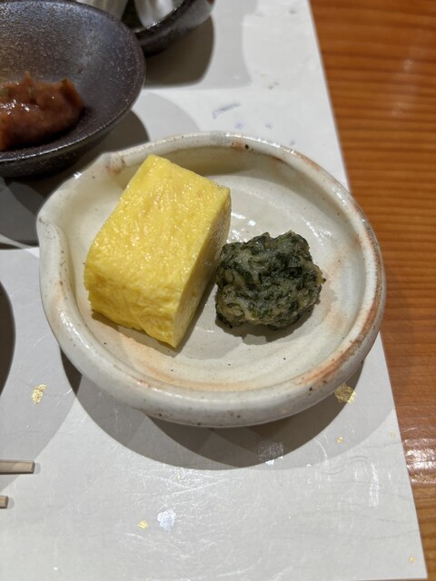 厚焼き玉子と飛び魚のさつま揚げ 薩摩揚げは出汁にも使われる飛び魚の擂り身100%使用