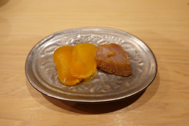知多で唯一ミシュランの星を獲得したお店♪普通の田舎のお寿司屋さんだった頃からきらりと光るものがあり、名古屋から電車で小1時間、最寄駅は普通しか停まらない無人駅です。そんな立地で「コース仕立て一本でやりたいようにやる!」って無謀なことをやりだしたんですが見事成功!噂が噂を呼んで近所より遠方からのお客が多いんじゃないかな?戸井(津軽海峡)の鮪も出すけど基本は伊勢湾と三河湾の地物を上手に使って名古屋や東京のお寿司とはちょっと違うものもいただけます♪