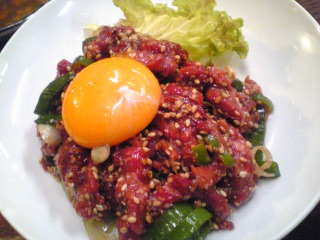 ありし日の、、ユッケ♪、、何回も食べてるけど一度もお腹壊したことなかっただけに残念:涙