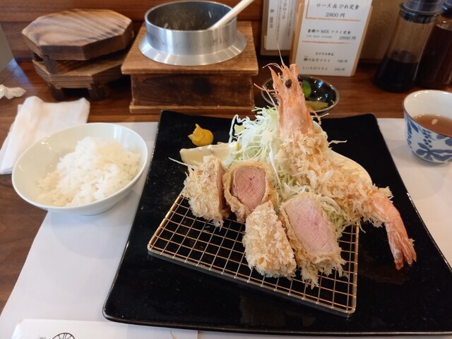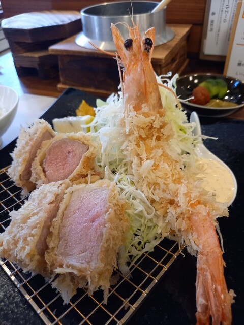 メニューに悩みましたが、今回は林SPFポークのロース&ヒレ定食と大えびひれかつ定食を注文し、大えびは天使のえびに変更してもらいました。海老好きなので、やっぱりエビフライは外せない(^q^)