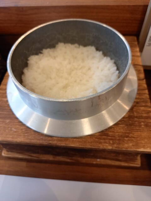 カウンター越しにシェフの調理の様子が見え、期待に胸が膨らみます!とんかつが揚がるまでに、豚汁やお漬け物が運ばれ、ご飯は土鍋で1人ずつ出していただけます。