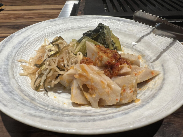 お店。 キムチ ナムル等の副菜以外は ヘレかシャトーブリアンの二択。 この日はシャトーブリアンの300gを二つ 二人で600g 。 この日は山形牛だと仰られていました。すごい迫力です。