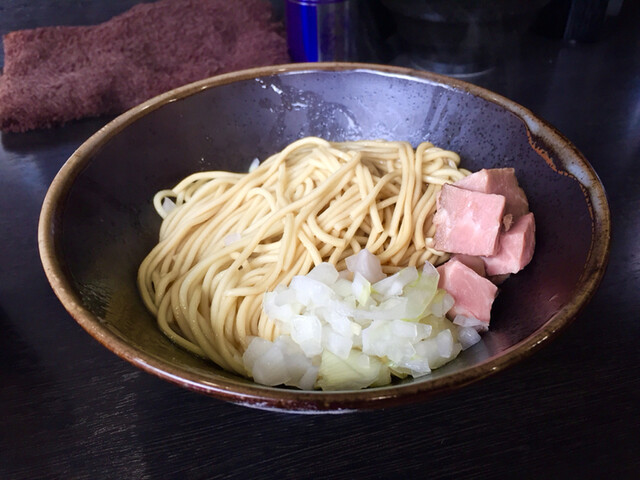 和え玉(200円醤油)もオーダーしました。こちらは、非常に上品な味と盛り付けでした。醤油だれにはジャンキー感がなく、こういう感じの和え玉は私は今まであまり食べたことがなかったけれども、これはこれですごく好きです。和風な感じで嫌なアブラ感も少ない。麺は勿論パッツリで、あと、大きめに切られたブロックチャーシューが大変良い。先程と同じものと思われますが、切り方、提供の仕方が変わるだけで、こうも変貌します。先程より肉感が強まりました。よりパワフルに味を感じます。ですが柔らかい。上質なのでしょうね。