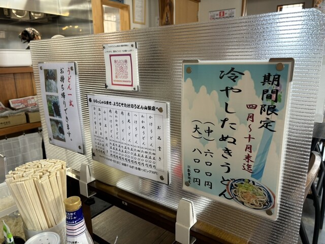 そういう私たちも、次にもお食事が控えているであろうこともあり、中サイズ肉うどんにしておこうと、即決20秒。友人は、このお店では未食?の冷やしうどんをオーダーいたしました。