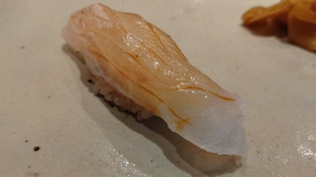 白甘鯛の松笠焼きでした。握りでは金目鯛の炙り、この時期の
