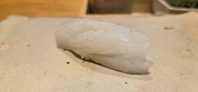高ミネラルワインには赤貝の握りで感激、竹岡の真鯛は〆たばかりから