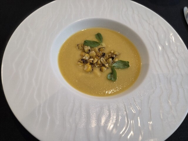 スープはとうもろこしの冷製スープでかなりとろみの有るタイプでとうきび