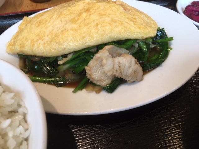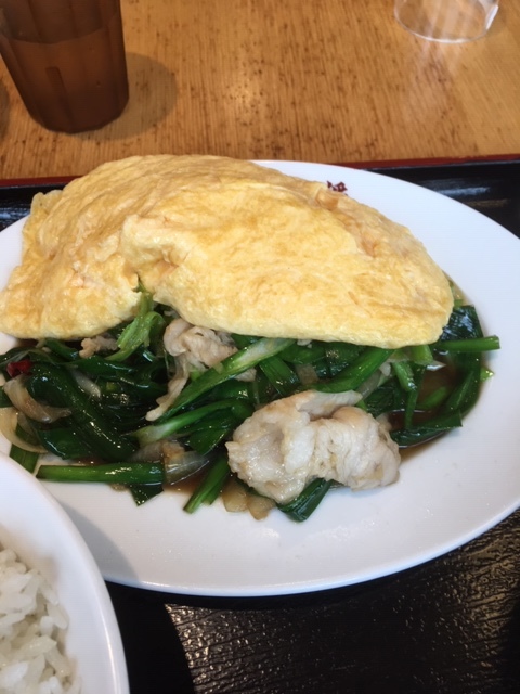 オムレツは無味、ニラ炒めも若干味が薄いかな?