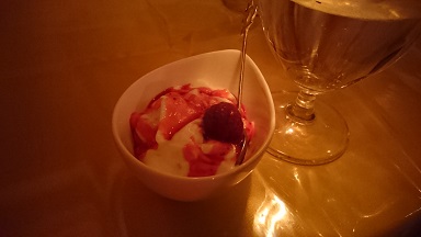 内地の友人を案内しての二軒目。バーアウルへ行きました。建物の階段を上がって二階にお店があります。カウンター席とソファ席があります。ソファ席に通してもらいました。カウンター席はこんな感じ。フルーツが並べられています。テーブルには、フローティングキャンドルが置かれています。突き出し(というのかな)は、ベリーソースとベリーがのった、ヨーグルトです。甘さ控えめでさっぱりします。3人それぞれ別のフルーツを使ったカクテルにしました。パッションフルーツを使ったゴールデンスランバー。パッションフルーツの実がのっています。シークワーサーを使ったフルーツカクテル。シークワーサーたっぷり!酸味の効いたカクテルだそうです。私は大好きなマンゴーのカクテル。キングオブマンゴーです。マンゴーの実も添えられている、濃厚なカクテルでした。夫婦お二人でされているのでカクテル出されるまで少々時間がかかりますが、とっても見目華やかで沖縄らしくて美味しいので、内地の方を案内するのにもいいバーなんです。この日は一杯ずつだけ頂いて、一人2000円ほどでした。総合 4.5料理 3.5雰囲気 4.0サービス 3.5ドリンク 5.0CP 3.0