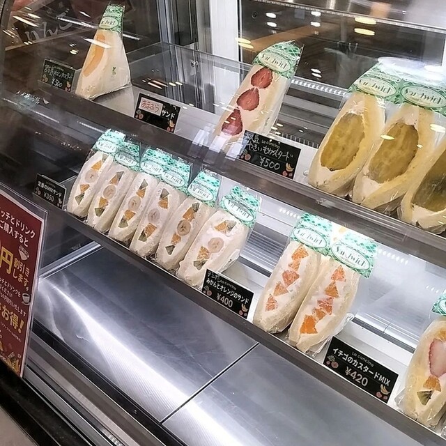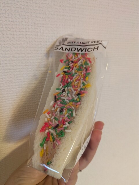 初めて見たときは「フルーツサンドのお店でフルーツ入ってないサンド、誰が買うんだろう?」と思っていたのですが。