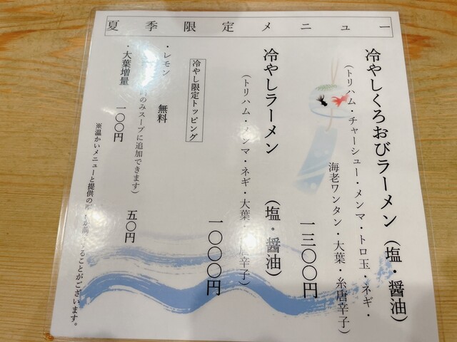 ホントは1番人気のくろおびラーメンと決めてましたが、この日は35℃越えの猛暑。。そこであっさり冷やしに路線変更。注文したのは季節限定メニューの『冷やしくろおびラーメン』