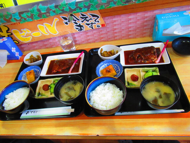 レアメニューの「イノシシ角煮定食」以外では、鯖味噌定食が一番人気である。