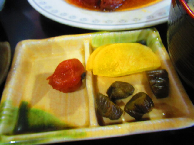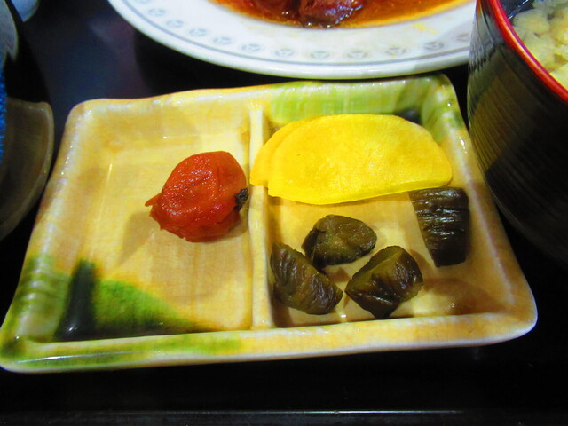 日替わりワンコインランチ・鯖味噌定食 500円(税込)の漬物のアップ【2022年9月】