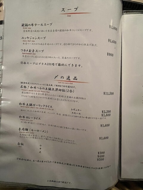 メニューを見てひとつひとつ頼むのもよいのですが、メニュー表を拝見していると、お肉9000円以上、前菜含むお肉10000円以上のお任せコースも可能なようだったので、最初はお任せ10000円コースで、後から他にも食べたいお肉を追加する形でお願いしました。
