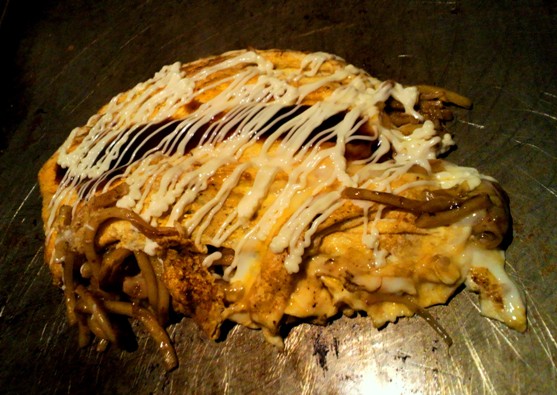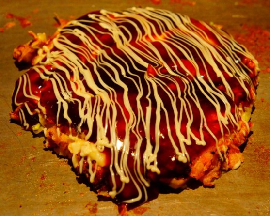 出汁がよく効いていて、やわらかくジューシーなお好み焼きです。