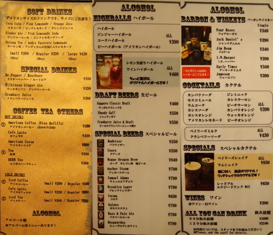 ソフトドリンク・アルコール類も充実しています。