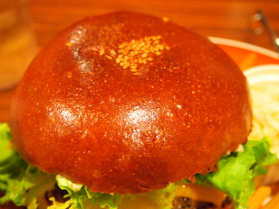 大きめのバンズはベーカリー特注で小麦の良い香りがします。