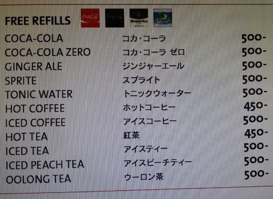 ドリンクはFree Refills(お代わり自由)メニューにしました。