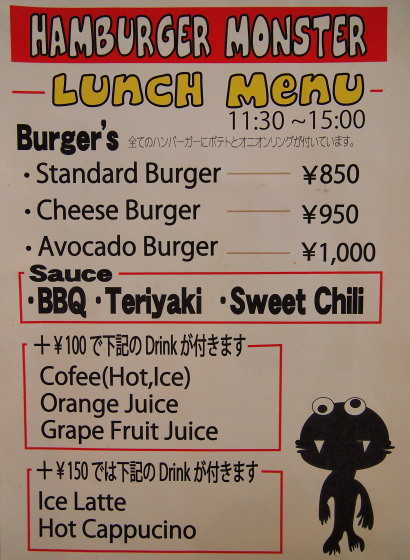 平成25年2月昼食をいただきにハンバーガー専門店『ハンバーガーモンスター』さんを訪れました。