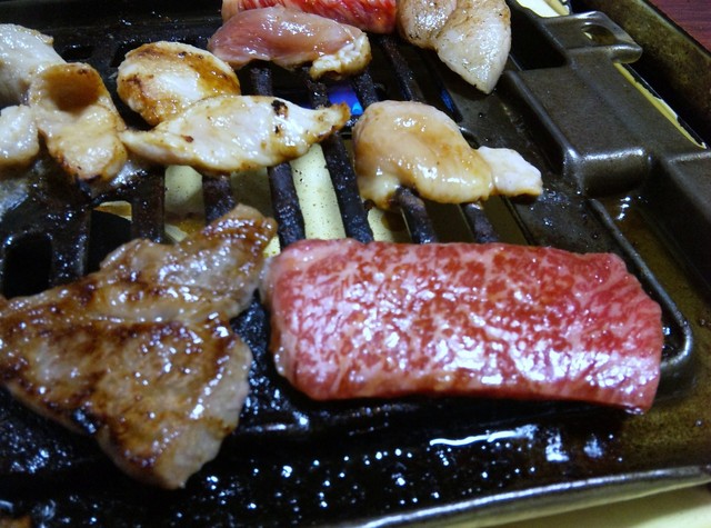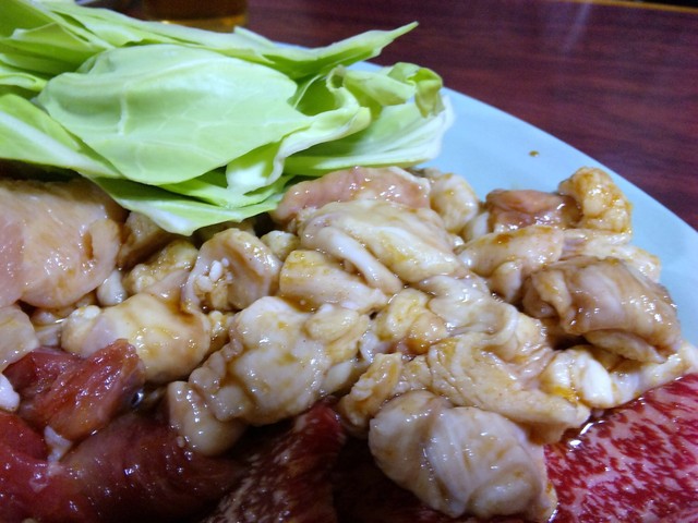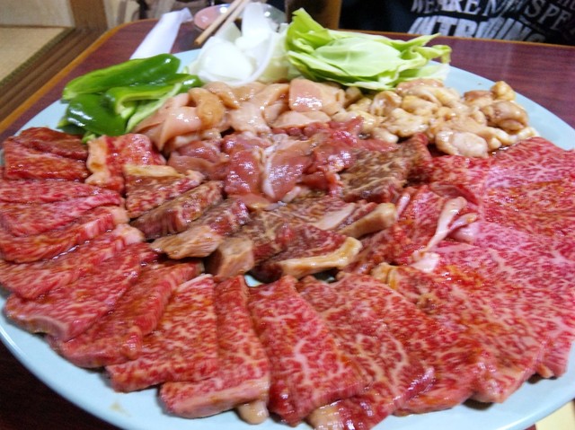 焼肉の盛り合わせ(上カルビ、上ロース、ミノ、ホルモン、地鶏)