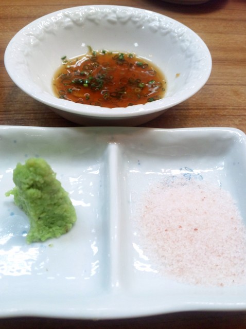 山葵 岩塩 ポン酢で頂きます