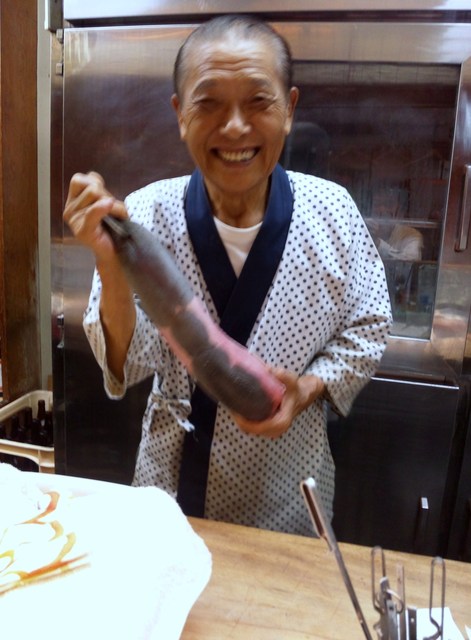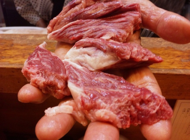 冷蔵庫で吊るし、熟成させ、その日最も極上の物を提供します。