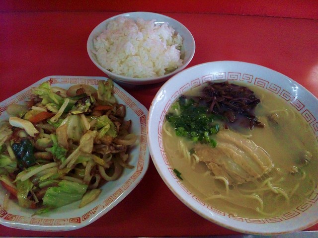 今回の注文は、ラ―メン、野菜炒め、ご飯の(中)です