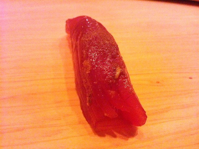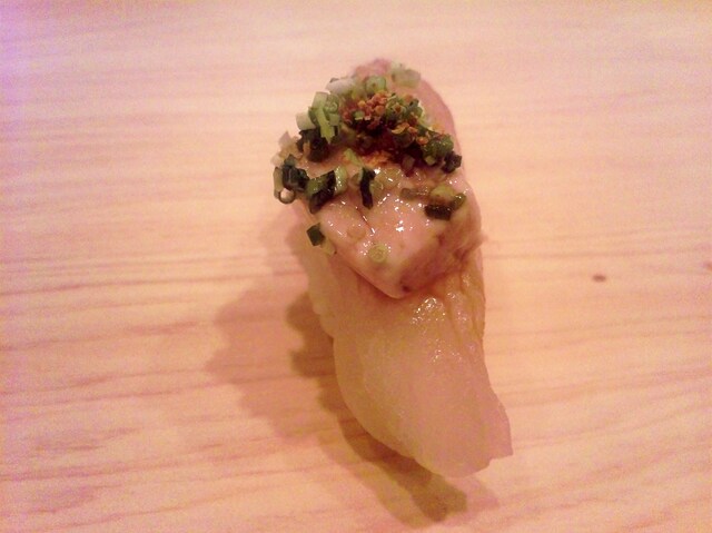 皮剥肝乗せ 濃厚な肝の旨味にすっきりした酢飯に良く合います!