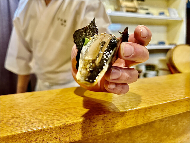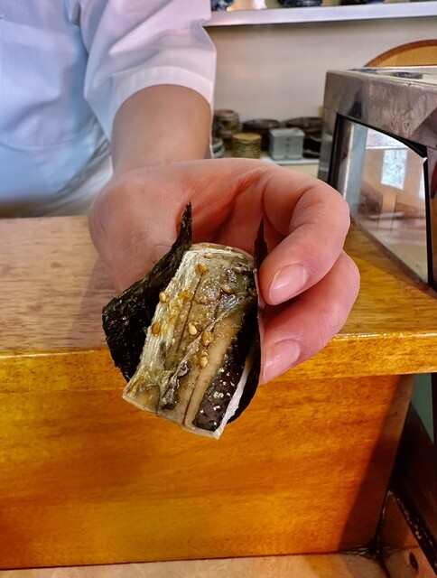 皮剥昆布〆(藍島) ネタと酢飯の間には肝 美味い!