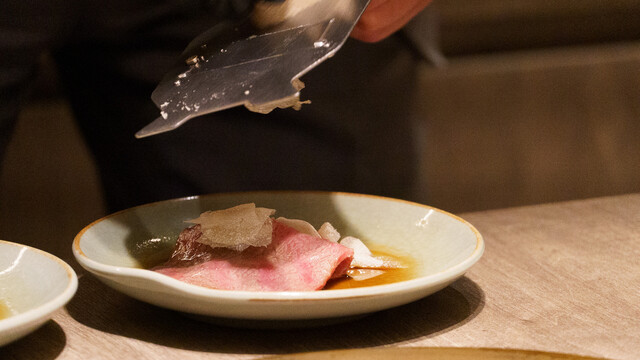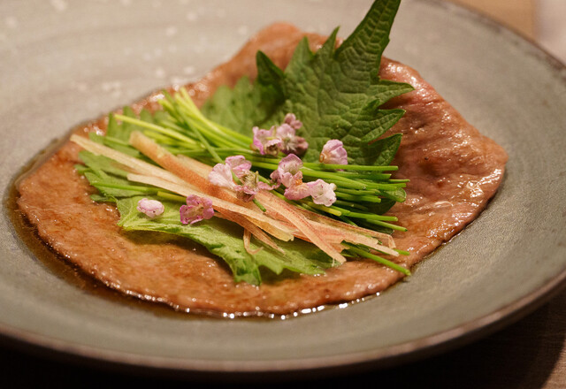 焼の最後は、茗荷や芽葱と合わせてさっぱりと。