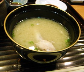 お腹もちょうど良い加減になって、お勘定をお願いすると、最後に潮汁を出してくれました。