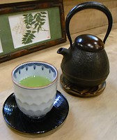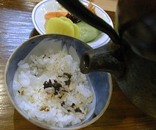 ので、南部鉄のずっしりした茶瓶のお茶をかけ、さらさらと美味しくいただきました。