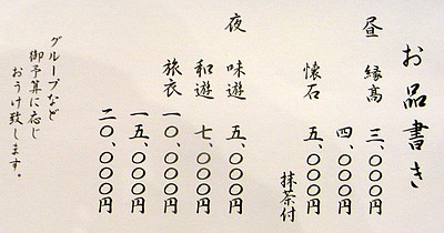 一応、メニューを見せてもらって、一番お手頃な3,000円(税込3,150円)